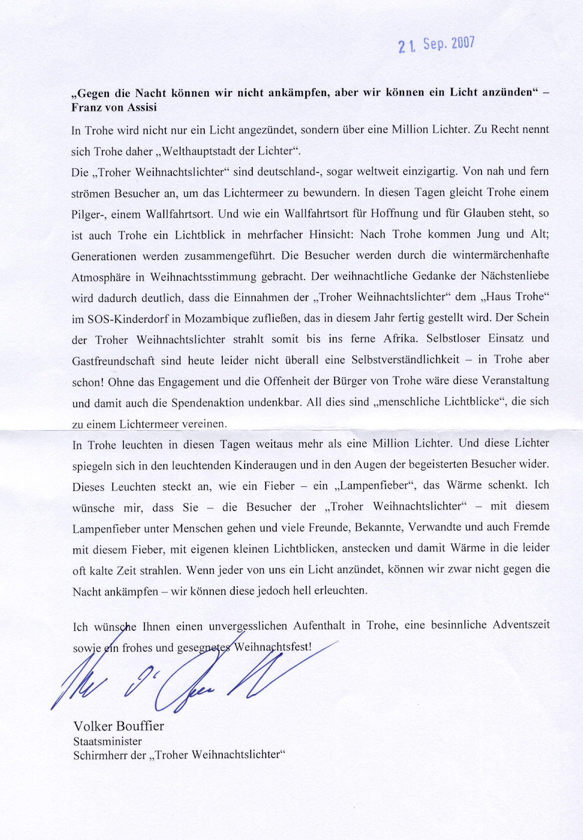 Auch in diesem Jahr konnten wir Volker Bouffier wieder als Schirmherrn der "Troher Weihnachtslichter" gewinnen.